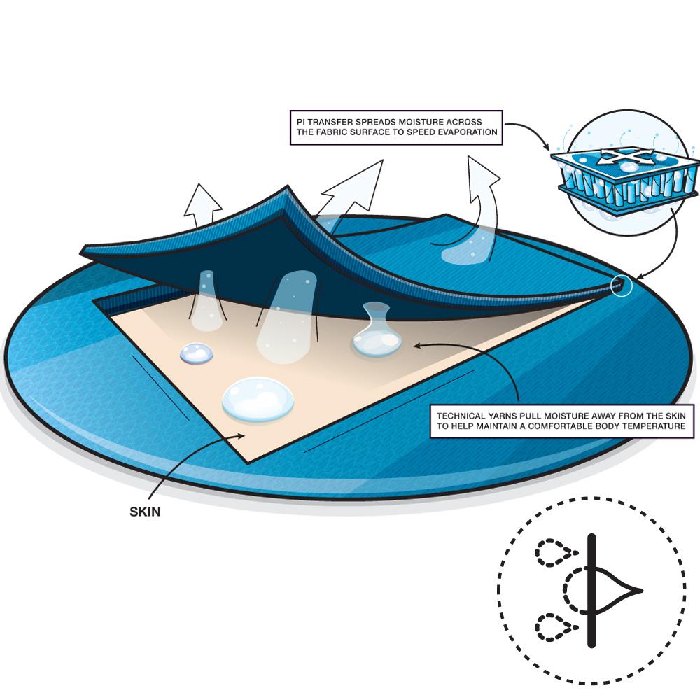 Technical fibers transport perspiration away from your body, promoting faster evaporation so you stay cool and dry. Perfect for warm to hot days, and against the skin as part of a layering system on a cold day.
