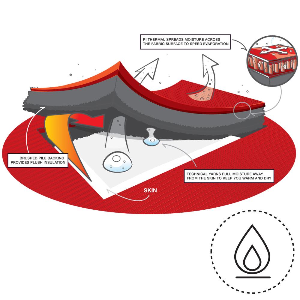 Technical fibers transport perspiration away Lofted technical fibers dry fast and retain just the right amount of body heat to keep you comfortably warm.