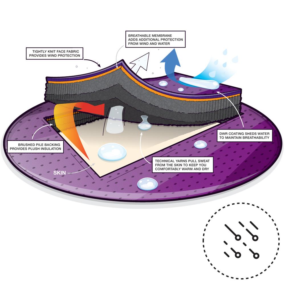 Softshell technology combines breathable protection from wind and water with lofted fibers to retain body heat, so you can make the most of cold wet days.